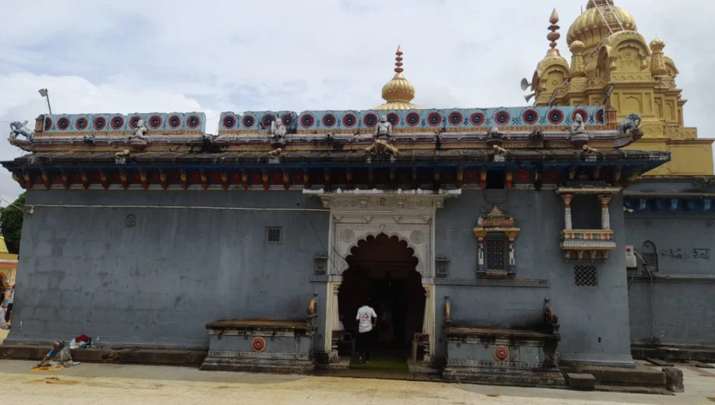 मंदिरास तीन दरवाजे असून मंदिराच्या मुख्य दरवाजा हा पूर्व दिशेस आहे बाकीचे दोन दरवाजे बंद करण्यात आलेले आहेत, मुख्यप्रवेश द्वाराच्या दोन्ही बाजूस छोटया मंडपी आहेत उत्तरेकडील बाजूस मारुतीची मूर्ती असून दक्षिण बाजूस गजाननाची मूर्ती आहे. मुख्य दरवाज्या च्या वरती नगारखाना असून त्यावरती अनेक शिल्प कोरलेली आहेत. मुख्य प्रवेश द्वारामधून आतमधे गेल्यास, आपल्या उजव्या बाजूस दोन दगडी घोडे आहेत आणि एक तुलसी वृंदावन देखील आहे.