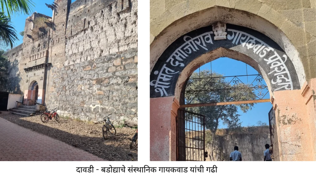 गढी च्या आजूबाजूला लोक वस्ती असून येथे गाव वसलेले आहे गावाच्या चारही बाजूनी तटबंदी असून तटबंदीच्या पूर्व दिशेला मुख्य दरवाजा आहे व उत्तरेस एक छोटा दरवाजा आहे, येथे अजून ही त्या काळातील तोफा उपलब्ध आहेत गावाच्या बाहेरील बाजूस ग्रामदेवी महलक्ष्मी मंदिर असून त्या शेजारीच गायकवाड संस्थानिकांनी बांधलेले मोठे तळे आहे. जवळच कण्हेरसर येथे चंद्रचूड यांनी बांधलेला वाडा अजून चांगल्या स्थितीमधे असून, येथे प्रसिद्ध यमाई माता मंदिर देखील आहे.